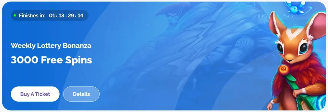 Each $30 deposit you make earns you a lottery ticket. The higher your deposit is, the more tickets you will receive. Each week, a winner is randomly selected. Winners could end up receiving thousands of free spins.