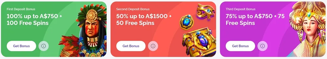 It should be noted that you can’t claim any of these deposit bonuses if you use Skrill or Neteller. Also, you’ll need to deposit a minimum of $30 to qualify. All the deposits have a 40X wager. The Boho Casino free spins will be spread across multiple days. The first two deposit bonuses get split evenly, with half awarded instantly and the other half provided after 24 hours. But the third deposit bonus is split over three days, with 25 free spins per day.